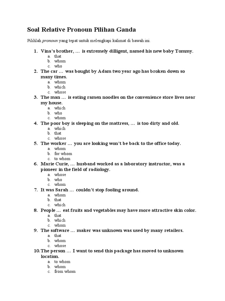 Soal Relative Pronoun Pilihan Ganda Pdf Verb Syntax